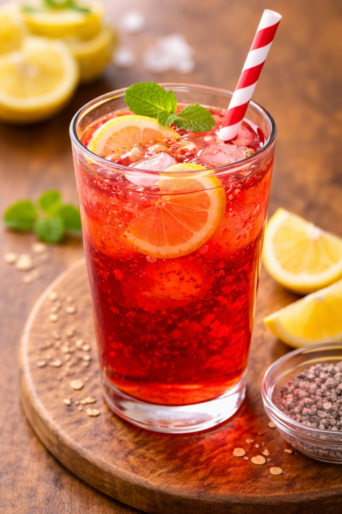 - (Optional) Add soaked basil seeds and lemon slices.